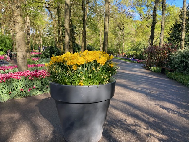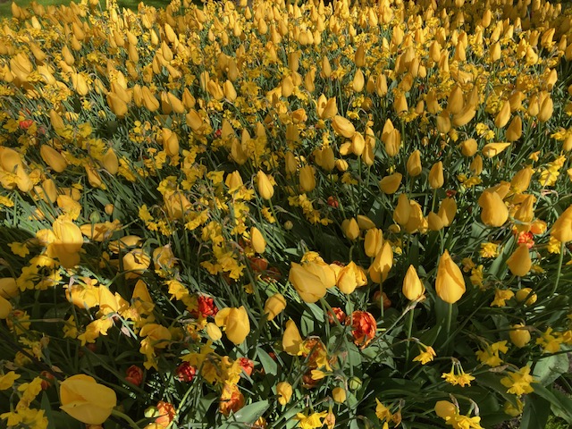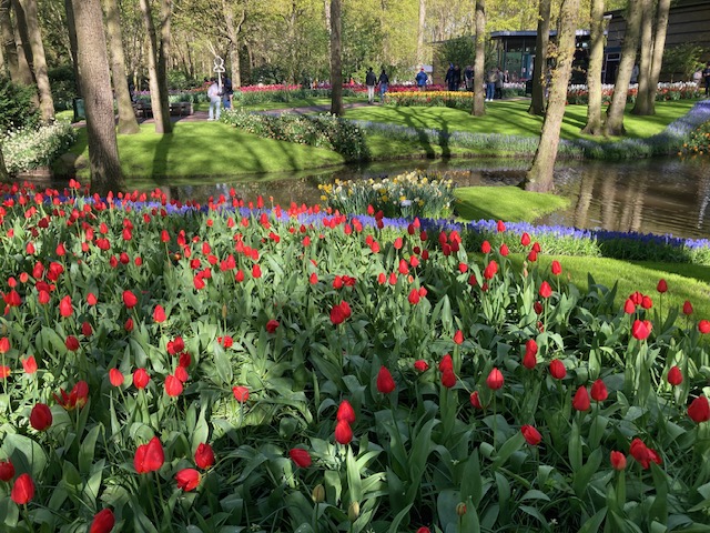 And so, I was most fortunate to find myself in the midst of a spectacular abundance of tulips in a visit to the Keukenhof Gardens in the Netherlands last month. I was astonished! Trees, blue sky, and tulips galore- what could be better!