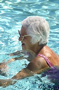 I saw my late mom’s swim friend, V., at the pool yesterday. There is something sweet about her calling me “Esther’s daughter”, as nobody else in Toronto would know me that way. V. is 80. She is bent over and uses a walker. Her spine is visibly twisted. She has had at least one hip replaced. She walks to do groceries, swims a couple of times a week and lives in the house where she was born.